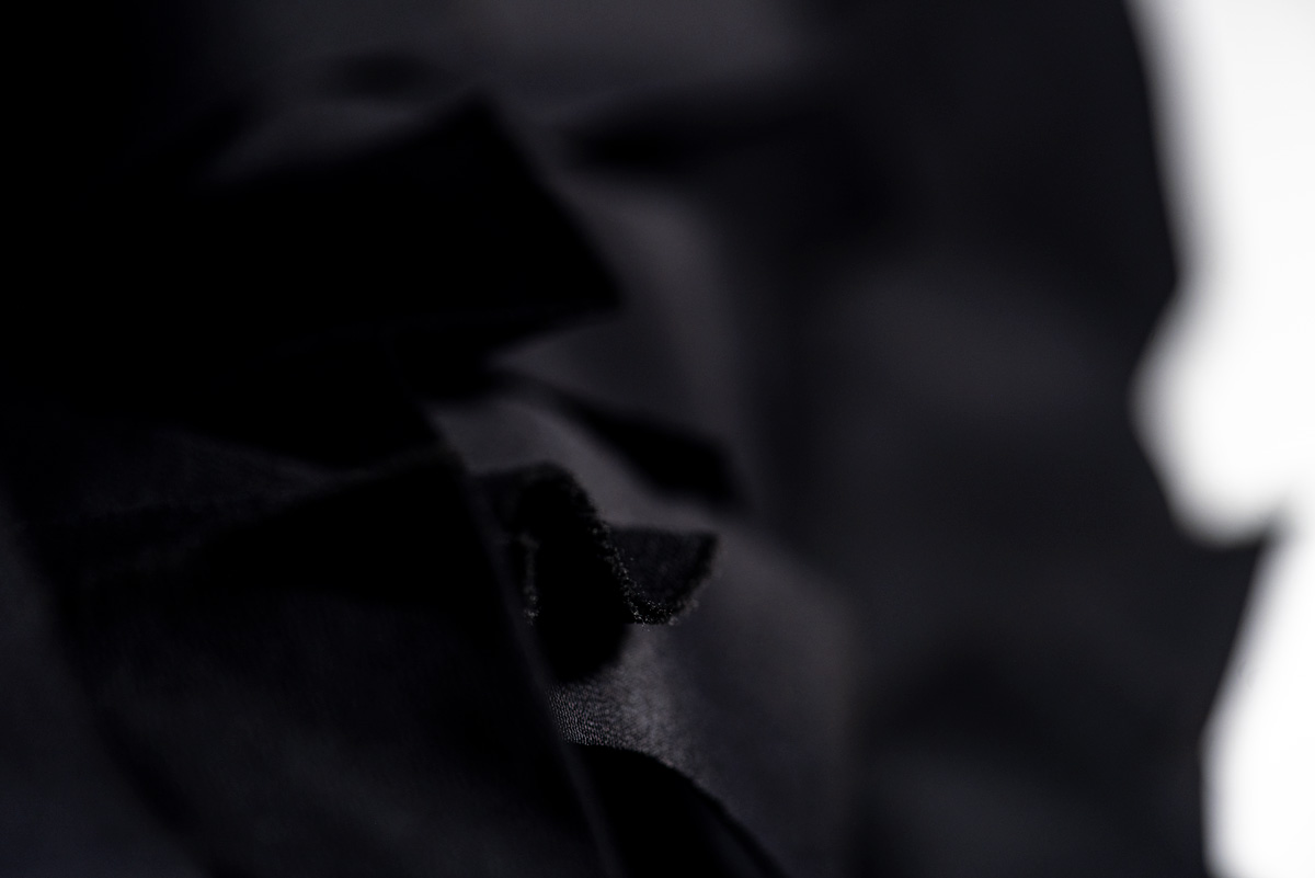 Attraverso il contatto con il tessuto la stilista Fuzia Jammali si lascia guidare nel creare la propria opera, un capo d’abbigliamento in esemplare unico. Inizia così il suo viaggio nell’ignoto che prende forma poco a poco, lavorando la trama del tessuto, trasformandola, plasmandola e traendone ispirazione.