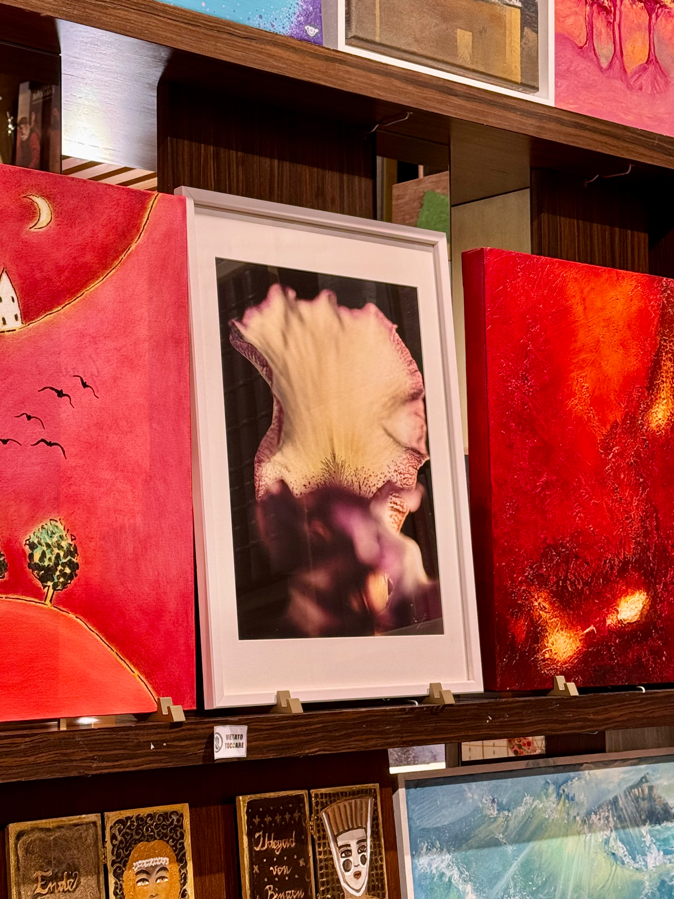 Con molto piacere vi porto con me mostrandovi alcune foto dell’evento e dell’allestimento all’interno di questa bomboniera dell’arte, un luogo intriso di storia, cultura e creatività dove ogni centimetro di spazio è occupato da un pezzo d’arte, sia esso un libro, una scultura, un dipinto, un gioiello, un oggetto d’arredo, una fotografia o un’opera di altro linguaggio che esprima la creatività dell’animo umano.