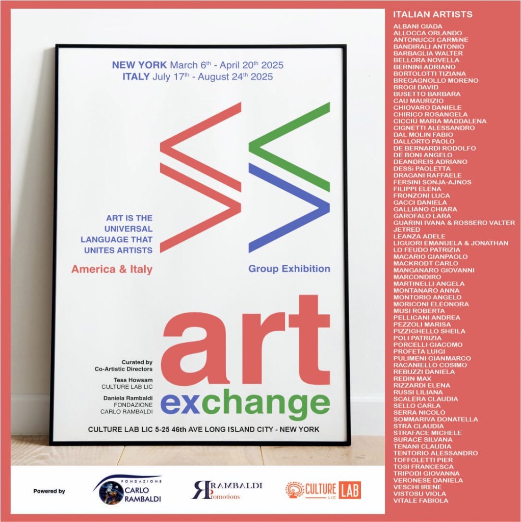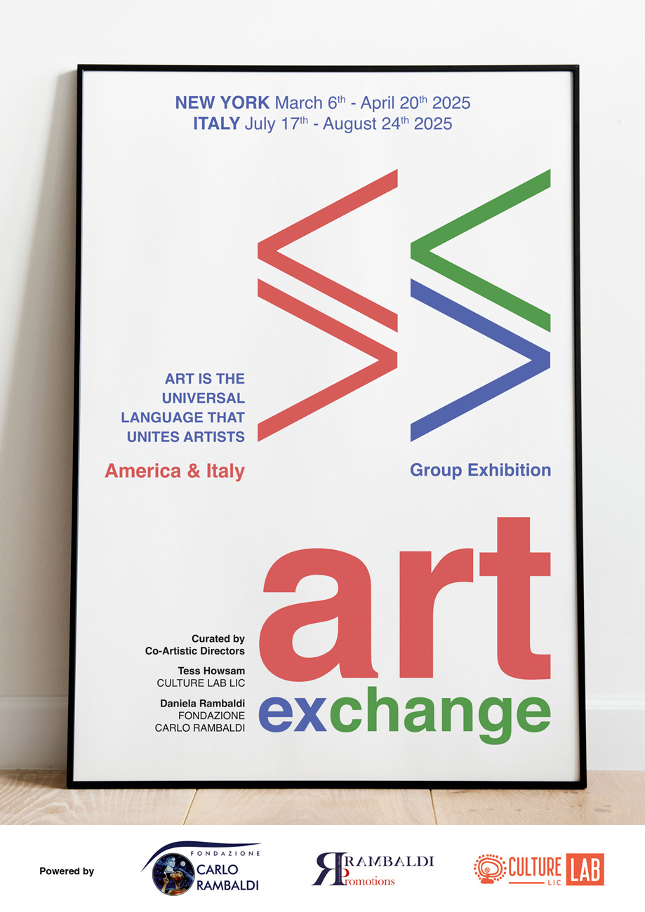 ART EXCHANGE è la mostra d’arte collettiva ideata da Daniela Rambaldi e organizzata dall’A.C. Rambaldi Promotions in collaborazione con il Culture Lab LIC di New York con il patrocinio di Fondazione Rambaldi nell’ambito delle celebrazioni internazionali per il centenario della nascita di Carlo Rambaldi.