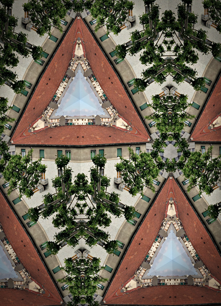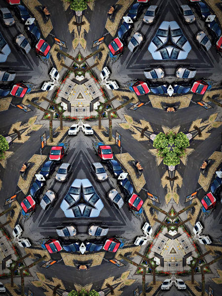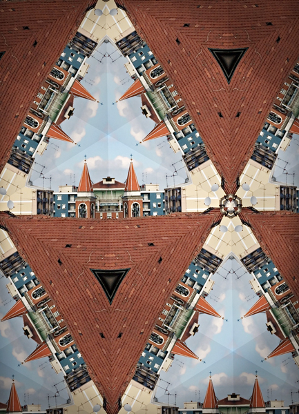 Tutto si trasforma: la macchina fotografica diventa un caleidoscopio che attraverso l’occhio del fotografo cattura attimi della quotidianità restituendo immagini con forme geometriche e nuove simmetrie che sorprendono e incuriosiscono l’occhio dell’osservatore, il quale può ritrovare il piacere infantile della scoperta e riassaporare lo stupore di quell’antica magia che si creava appoggiando l’occhio al caleidoscopio.