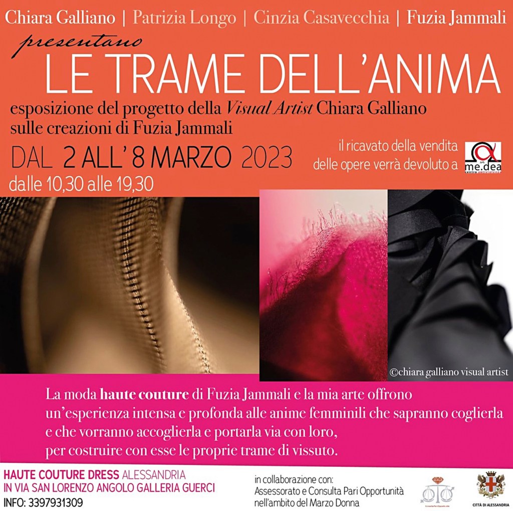 La moda haute couture di Fuzia Jammali e la mia arte offrono un’esperienza intensa e profonda alle anime femminili che sapranno coglierla e che vorranno accoglierla e portarla via con loro, per costruire con esse le proprie trame di vissuto.