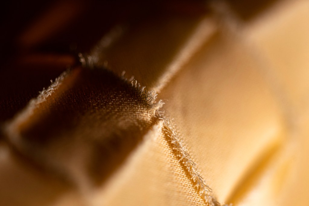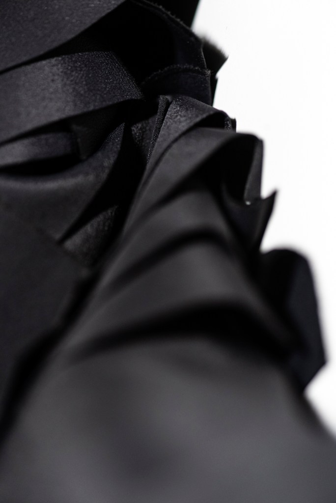 Attraverso il contatto con il tessuto la stilista Fuzia Jammali si lascia guidare nel creare la propria opera, un capo d’abbigliamento in esemplare unico. Inizia così il suo viaggio nell’ignoto che prende forma poco a poco, lavorando la trama del tessuto, trasformandola, plasmandola e traendone ispirazione.